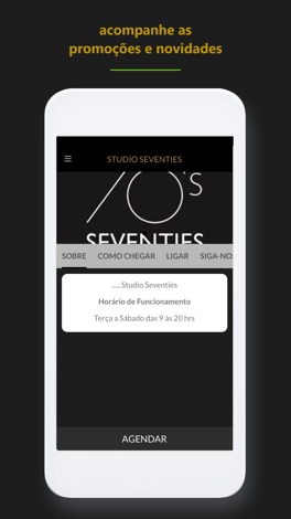 Agende seu atendimento no Studio Seventies de forma simples e intuitiva, com apenas alguns cliques.