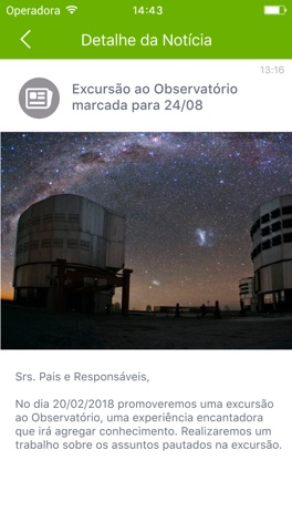 Com este aplicativo, os pais, responsáveis e professores poderão receber as últimas informações da escola, as notícias do dia a dia dos seus filhos e o calendário de atividades escolares.