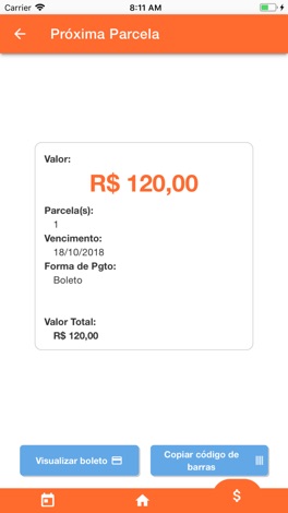 -Visualizar o boleto da sua próxima parcela ou somente copiar seu código de barras para realizar o pagamento;