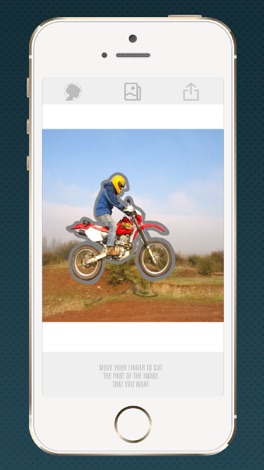-Clique A cabeça de botão silhueta para selecionar uma foto da galeria ou tirar uma foto com a câmera, e depois pintar com o dedo a parte da foto que deseja cortar.