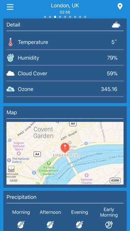 - Previsões precisas de precipitação para cada localidade e região em todo o mundo, incluindo chuvas, intensidade, pressão do vento, etc.