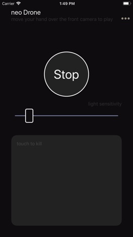Neo Drone é inovador como o sintetizador. O passo dos osciladores é controlado movendo a mão no ar sem tocar no dispositivo. A mão é rastreada pela câmera frontal. O algoritmo por trás foi feito por mim no segundo Music Hakathon em Sofia.
