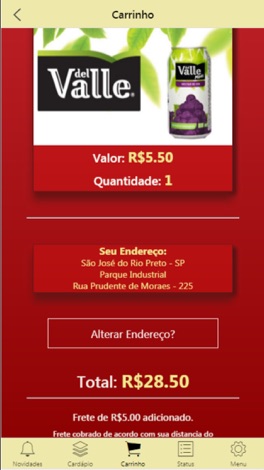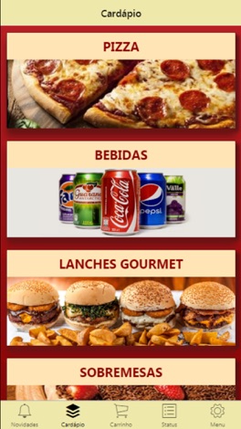 Nele voce pode testar a realização de um pedido, conferir o cardápio, verificar as novidades, escolher produtos a seu gosto e confirmar no carrinho.