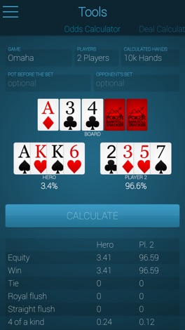 • Calcule odds Holdem e Omaha com a calculadora de probabilidades.