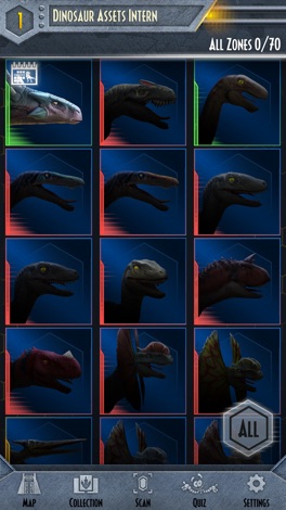 Explore o mapa do Jurassic World e colecione dinossauros em 4 habitats diferentes.
