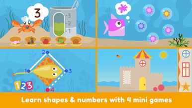 • 4 mini-jogos originais para crianças aprenderem formas, cores e números através do jogo