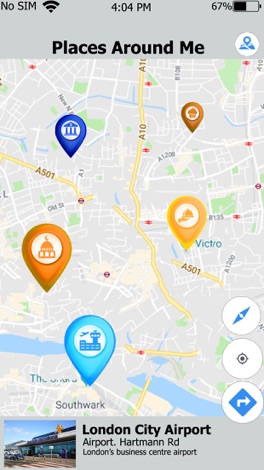 O aplicativo Places Around Me & Routes permite que você possa pesquisar o lugar favorito no mapa. Neste aplicativo, você pode pesquisar o lugar público nas proximidades, como um banco, caixa eletrônico, estação de polícia, hospital, barra, cassino, mercado etc. e desenhe a rota da sua localização. Quando você desenha sua rota, a navegação é ajudar a navegar na rota até que você não alcance o destino. Places Around Me & Routes é o seu assistente para as rotas.