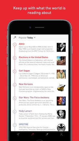 Inquire by Tamper (formerly Curiosity by Tamper) é a forma mais fácil de descobrir e aprender sobre o mundo à sua volta. Ao utilizar a sua localização, tópicos em destaque e outras secções curadas, o Inquire traz-lhe os artigos mais interessantes e relevantes usando a coleção extensa e fiável da Wikipedia.