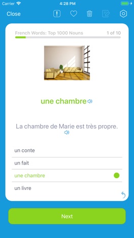 Estamos à frente de nossos concorrentes porque nossos métodos realmente geram resultados positivos - as palavras não são apenas familiares, mas ficam trancadas na sua memória para sempre (graças ao algoritmo de repetições espaçadas) e estão à sua disposição para usar quando você fala ou escreve em francês.