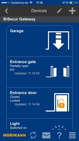 Todas as funções, que são acionadas com os seus emissores, também podem ser realizadas com a aplicação BiSecur. O menu intuitivo torna o manuseamento muito simples.