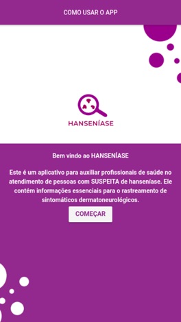 Este é um aplicativo para auxiliar profissionais de saúde no atendimento de pessoas com SUSPEITA de hanseníase.