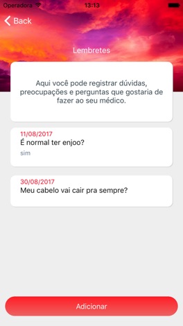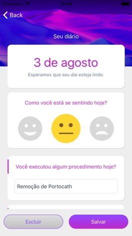 Acompanhamento de todas as suas sensações e perspectivas. Sua rotina salva sem perder nenhum detalhe, pronta para ser compartilhada com seu médico quando necessário.