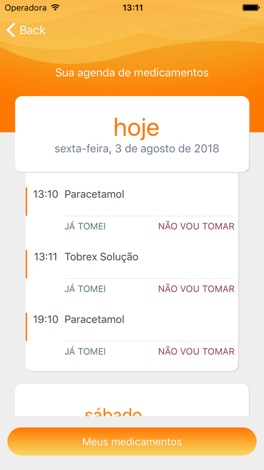 Remédios, tratamentos, consultas: tudo organizadinho na agenda e com alarme. Nenhum medicamento deixa de ser tomado por distração ou esquecimento!