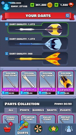 - SISTEMA COMPLEXO DE MELHORIAS: Encontre peças novas para melhorar seus dardos!