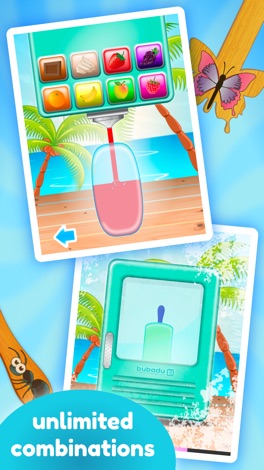 Você poderá selecionar várias formas e misturar diferentes cores dos sabores para fazer seus picolés. Será uma experiência de dar água na boca. É possível escolher também entre as diversas opções de palitos, caramelos, coberturas, brinquedos e outros elementos para enfeitar suas criações doces e geladas.