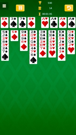 No campo de jogo você pode mover cartões simples ao redor apenas como na versão clássica de Solitaire. Por exemplo, você pode anexar um vermelho seis ao preto sete em outra coluna.