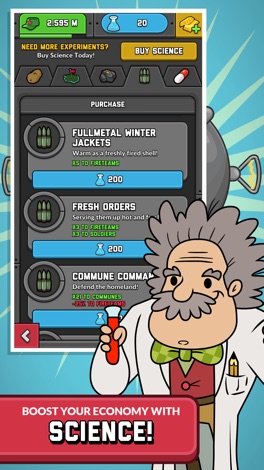 Se torne em um glorioso líder de um Estado Comunista e obtenha recursos para construir o poder supremo. Colete batatas, pesquise melhorias experimentais e crie meios eficientes de produção para alcançar as classificações mais altas.