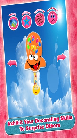 - Decore a partir de coberturas, incluindo polvilha, chocolates, doces, pirulitos, biscoitos, chapéus de coco