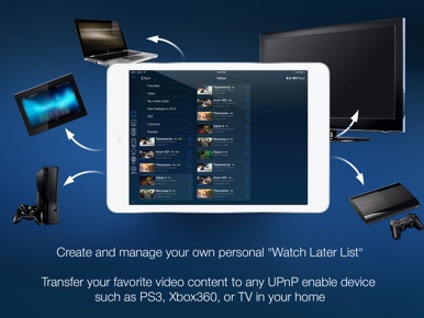 - Transfira seu vídeos escolhidos para qualquer UPnP habilitado como Xbox360, prestadores de UPnP, PS3, ou HD TV